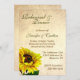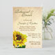 Jolie invitation à dîner de répétition mariage à l'aspect ancien, avec des graphiques de papier vieilli et une jolie illustration de tournesol antique. Le texte fait dans un vert foncé et marron est prêt à être personnalisé pour votre événement. Belle invitation pour un printemps, un été ou un Mariage de automne.