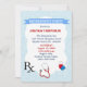 La prescription médicale pour la retraite est cette invitation bleue à la retraite avec un stéthoscope, un symbole RX, et des pilules rouges, blanches et bleues.
