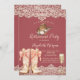 Casquette, bottes et verre de champagne avec perles et dentelle sur un arrière - plan rouge.