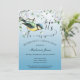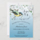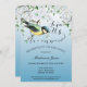 Une belle invitation à la retraite à thème oiseau avec un joli oiseau jaune sur une branche avec des fleurs blanches et arrière - plan bleu dégradé.