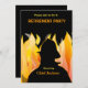 Invitation unique à la retraite pour un pompier ou un chef d'incendie. Design a un pompier avec des flammes dans l'arrière - plan et le libellé pour une invitation à la retraite. Facile à customiser avec les détails de votre fête.