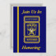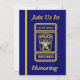 Cette invitation bleue et or est décorée sur le devant avec un logo d'insigne personnalisé du lieutenant de police. Vous pouvez customiser cette carte en plaçant vos informations dans les cases fournies. Vous pouvez également customiser l'insigne à l'avant et à l'arrière avec le nom de l'honoré.