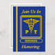 Cette invitation bleue et or est décorée sur le devant avec le bouclier retraité de physiothérapie. Vous pouvez customiser cette carte en plaçant vos informations dans les cases fournies.