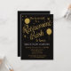 Cette joyeuse invitation festive de retraite met en vedette des arrière - plans noirs avec des faux ballons de parties scintillant d'or et des étoiles. Il possède une atmosphère élégante et fantaisiste avec un côté élégant. Le Retiree va adorer cet invitation de retraite élégant, tout comme vos invités. Convient aux hommes ou aux femmes qui prennent leur retraite.
