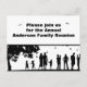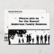 Une représentation graphique des personnes qui participent à un pique-nique en plein air est affichée sur une invitation de carte postale en noir et blanc. Personnalisez l'invitation avec votre propre nom de famille imprimé au-dessus du graphique et d'autres informations de réunion à l'envers.
