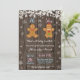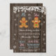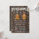 Invitation à la révélation de genre pour Noël d'hiver. Flocon de neige blanc. Lui ou Elle. Garçon ou fille. Rose et Bleu. L'homme en pain d'épices de Noël. Arrière - plan en bois rustique. Country Vintage Retro Barn.
