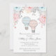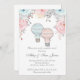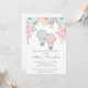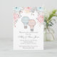 Fleurs et montgolfière Genre Reveal Invitation avec un libellé gris