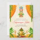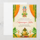 Cette invitation numérique DIY Satyanarayan, une invitation fusion dans l'élégance traditionnelle, est complétée par des fleurs et des feuilles, parfaite pour votre invitation à la pooja indienne.