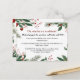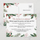 Célébrez vos fiançailles avec le charme festif de la carte postale d'invitation de fiançailles de Noël rouge et vert, un choix parfait pour les couples qui prévoient une célébration sur le thème des fêtes de fin d'année. Cette carte postale capture l'essence de la saison avec un cadre de couronne de Noël magnifiquement conçu, orné de baies rouges vibrantes et de feuilles vertes luxuriantes, qui donnent vie aux couleurs intemporelles de Noël. Le modèle de texte d'invitation de fiançailles sur le thème de Noël ajoute à l'esprit de la saison, ce qui en fait un choix idéal pour les fiançailles qui ont lieu en décembre ou à tout moment de la période des fêtes. Le design dégage une atmosphère chaleureuse et joyeuse, qui donne immédiatement le ton pour une célébration hivernale mémorable.