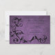 Créez une invitation unique avec une invitation de douche de mariage Purple Lovebirds. La conception de l'invitation présente un fond grunge violet orné d'une vigne feuillue et de deux amoureux lovés. Personnalisez avec les noms des mariés ainsi que les détails de la douche de mariage. La papeterie de mariage supplémentaire est disponible avec ce design également. Besoin d'aide pour la personnalisation ? Veuillez me contacter et je m'occuperai de la formulation et des détails pour adapter ce design à votre satisfaction.