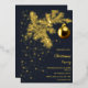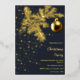 Invitation à la soirée de Noël bleu profond et or avec véritable feuille d'or