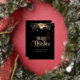 Une carte de Noël festive noire et dorée dégage de l'élégance et de la sophistication, parfaite pour célébrer la saison des fêtes. La carte présente un fond noir luxueux orné d'accents dorés scintillants, tels que des flocons de neige, des étoiles et des motifs complexes. Le point central est un message "Joyeux Noël" audacieux et élégant en or, qui irradie de chaleur et de festivité. Des détails supplémentaires, comme une bordure subtile ou des ornements dorés délicats, rehaussent le charme du design. Cette carte est idéale pour transmettre des vœux de Noël sincères avec une touche de glamour, ce qui la rend appropriée pour les salutations personnelles et professionnelles.