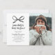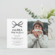 Exprimez votre fierté et votre joie pour le futur diplômé de votre vie avec nos élégantes invitations de fête de remise de diplôme. Conçues avec un fond blanc simple, un nœud à l'aquarelle noir accrocheur et une photo personnalisée du diplômé, ces invitations se démarquent de la foule. Le jeu de mots ludique 'vous l'avez fait, quelle façon de vous incliner' ajoute une touche d'humour, tandis que le modèle de texte moderne permet une personnalisation facile. C'est le mélange parfait de design chic et de touche personnelle pour célébrer cette étape spéciale.