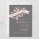 D'un style fleuri, cette invitation à la Fête de l'mariée Tea Party est féminine et charmante. Une belle bannière flottante est ornée de fleurs roses stylisées, de baies, de bourgeons et de verdure et sertie contre un arrière - plan de douceur grise de colombe. Un design fabuleux pour une fête du thé contemporain en l'honneur des futurs mariés.
