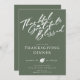 Célébrez l'esprit de gratitude avec notre élégante invitation à dîner Thanksgiving. Cette carte magnifiquement conçue présente des couleurs chaudes automnales et de charmants motifs saisonniers, donnant le ton parfait pour votre réunion festive. Invitations vos proches à partager dans une soirée délicieuse remplie de délicieux plats, souvenirs chéris, et connexions sincères. Faites de votre fête de Thanksgiving une occasion inoubliable avec cette invitation exquise qui saisit l'essence de la fête.