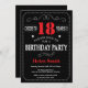 Invitation 18e anniversaire Typographie rouge et noire. Tableau de bord. Arrière - plan noir et blanc. Anniversaire adulte. Hommes ou femmes, anniversaire. Enfants Garçon ou fille Ado Anniversaire adolescente Invitation . 13e 15e 16e 18e 20e 21e 30e 40e 50e 60e 70e 80e 90e 100e. N'Importe Quel Âge.