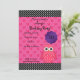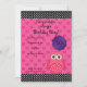 Invitation de 5" x 7" avec mignonne motif de papillon rose hibou, avec bandes noires avec pois blancs un cercle de pétoncle violet pour changer l'année d'anniversaire pour 1er, 2ème, 3, 4, 5, 6, 7, 8, 9, 10, 11, 12, 13 14, 15, 16, 17, 18, 18, 1 9, 20, 30, 40, 50, 60, 70, 80, 90 owl thème fête d'anniversaire invitation