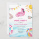 Célébrez avec un anniversaire à thème de piscine ! Idéal pour les fêtes d'anniversaire de piscine pour votre bébé d'été. Cette amusante invitation à l'anniversaire au thème de la piscine comprend un flotteur de piscine rose aquarelle avec un arrière - plan d'aquarelle bleu. Personnalisez avec vos informations ou cliquez sur "Cliquez pour customiser plus loin" pour modifier les styles, la taille et les couleurs des polices.