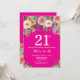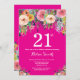 Invitation à la florale rose-chaud 21e anniversaire pour les femmes. Fleur florale aquarelle. Arrière - plan rose chaud. Rose, Jaune, Orange, Fleur Violet. Anniversaire adulte. 13e 15e 16e 18e 20e 21e 30e 40e 50e 60e 70e 80e 90e 100e, n'importe quel âge.
