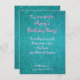 Invitation d'anniversaire modèle avec faux turquoise/turquoise/aqua parties scintillant arrière - plan très étincelant, brillant et girly avec police rose
