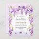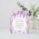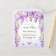 Un élégant arrière - plan à dégradé blanc et violet, décoré de fleurs de glycine couleur lavande, papillons et un arc. Personnalisez et ajoutez un nom et des détails du parti. Retour : lavande couleur 1 feuille = 1 invitation imprimé bord à bord.
