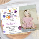 Préparez-vous à une aventure gustative avec notre Invitation d'anniversaire d'astronaute violet! Avec un design astronaute et galaxie amusant et un espace photo personnalisable, cette invitation est parfaite pour les jeunes explorateurs de l'espace. Personnalisez facilement pour une célébration inoubliable de l'espace extra-atmosphérique.