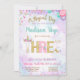 Célébrez le 3ème anniversaire magique de votre petit amoureux de la licorne avec cette belle invitation! Conçue avec une douce aquarelle aux accents de parties scintillant fleurie et faux or (pas de parties scintillant désordonnée), cette invitation créera un merveilleux thème pour la grande journée !