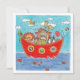 Cette belle illustration d'un stylo et d'aquarelle de Helen McCartney Designs présente un groupe d'animaux sucrés qui s'agglutinent à bord de Noah's Ark.