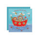 Cette belle illustration d'un stylo et d'aquarelle de Helen McCartney Designs présente un groupe d'animaux sucrés qui s'agglutinent à bord de Noah's Ark.