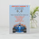 Cette voiture de course bleue avec des flammes qui fuient l'invitation de l'arrière-anniversaire est un mignon invitation pour votre petit garçon spécial qui aime les voitures. Il y a des timbres-poste correspondants pour les voitures de course disponibles pour cet invitation. Graphiques par:delightful-doodles.com