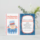 Notre pétard est en train d'en tourner un !! Commencez votre fête avec cette adorable invitation du 1er anniversaire. Sur le côté droit se trouve un arrière - plan bleu avec des petites étoiles parsemées de rouge et blanc. Il y a un ovale blanc où vous personnalisez avec vos informations de fête. Sur le côté gauche se trouve un mignon bébé dans un tonneau blanc et bleu avec des étoiles sur lui portant un casquette patriotique et tenant les drapeaux américains. Il y a une rangée de petites étoiles rouges et bleues au milieu et à gauche de la frontière. Consultez les autres designs et couleurs que nous offrons. ©Illustrations JW