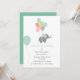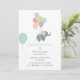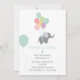 L'invitation de la petite fête d'anniversaire faite en blanc, avec des graphismes sucrés d'un petit éléphant gris maintenu en hauteur avec des ballons colorés. Personnalisez le texte, dans la partie inférieure de l'invitation, pour répondre à vos besoins.