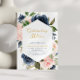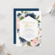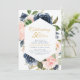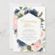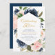 invitation marine et blush mariage anniversaire, fleurs d'aquarelle et élégant script de lettrage noir. Customisez le texte et les couleurs.