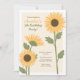 Invitation d'anniversaire de tournesol parfait pour une fête d'anniversaire d'été ou d'automne! Fleurs jaunes, en vichy et touches vertes. Ce serait également idéal pour une fête d'anniversaire d'adulte ! © 2023 Tea Olive Co.