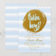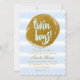 Invitation à l'aquarelle avec feuille dorée et bleue pour JUMEAUX GARÇONS. Articles assortis disponibles.