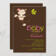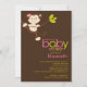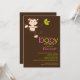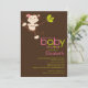 Commencez votre baby shower de safari dès maintenant avec notre invitation au baby shower des singes de la jungle. Notre invitation à la douche aux singes présente le plus mignon petit singe avec une fleur balançant sur une branche d'arbre sur un arrière - plan brun branché avec un singe qui se coordonne en arrière. Visitez notre boutique pour voir nos cartes de remerciement, cartes postales et autocollants correspondants. ©Petit Tatti