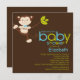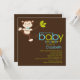 Commencez votre baby shower de safari dès maintenant avec notre invitation au baby shower des singes de la jungle. Notre invitation à la douche de singe présente le plus doux petit singe avec une cravate arc balançant sur une branche d'arbre sur un arrière - plan brun branché avec un singe qui se coordonne en arrière. Visitez notre boutique pour voir nos cartes de remerciement, cartes postales et autocollants correspondants. ©Petit Tatti