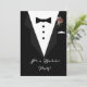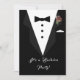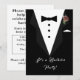 La conception présente l'apparence d'un smoking sur le devant, le texte de l'invitation sur le dos. Les lettres sont dans une police noire claire sur fond blanc. Rappelez-vous, les mariages ne sont pas juste pour la mariée !