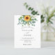 Un arrière - plan blanc décoré de tournesols, de verdure d'eucalyptus. Personnalisez et ajoutez vos noms et les détails de votre fête.