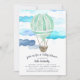 Célébrez votre bébé sucré sur le chemin avec notre invitation baby shower neutre genre dans les aquarelles vert menthe. Design présente une illustration de montgolfière en menthe et en aqua, volant à travers des nuages bleus moelleux, avec les détails de votre événement sous en lettres gris bleu fumé.