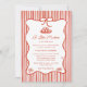 A Little Meatball is on the Way Doodle Baby Shower Invitation - Celebrate your little polpetta with charming Italian flair! This A Little Meatball Is on the Way baby shower invitation features whimsical hand-drawn doodle artwork inspired by classic Italian motifs. A playful red ribbon with bow detail frames the design, paired with matching trendy striped red background.