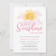It says "A Little Ray Of Sunshine Is On Her Way!" in stylish pink typography.