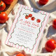 Celebrate your little tomato on the way with this sweet and playful baby girl baby shower invitation. Featuring hand-painted watercolor cherry tomatoes on the vine and charming red script that reads “A Little Tomato Is on the Way!”, this design is perfect for garden baby showers, picnic baby showers, and food-themed celebrations for a girl. A whimsical green scalloped frame and soft pink watercolor stripes create a fresh, feminine, and summery look. The wording “is on the way” is fully editable, making it easy to tailor for your event. Personalize this baby girl shower invitation with your details to create a delightful and memorable invite.
