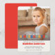 Élégante et élégante invitation à la cérémonie de remise des diplômes de maternelle. Grande photo centrale avec en-tête superposé des lettres de couleur mixte. Typographie et composition minimalistes modernes. Sophistiqué et jeune. Une magnifique invitation à célébrer une étape spectaculaire dans son parcours éducatif.