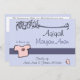 Célébrez une belle Aqiqa pour votre petite fille - et commencez à invitation tous les amis et la famille avec cette belle carte d'invitation islamique. Sur le devant, le nom de votre bébé est écrit sous 'Bismillah' - Au nom d'Allah - et le père et la mère sont ajoutés. Sur le dos, vous trouverez une belle copie d'un hadith sur la célébration islamique d'Aqiqa. Tous les champs sont personnalisables selon vos besoins.