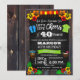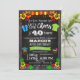 Invitation luau amusante et colorée, avec un arrière - plan en planche et en bois, des tongs, des chemises hawaïennes, des lampions en papier, des fleurs d'hibiscus, un masque de tiki et une boisson de coco. Idéal pour un anniversaire de luau et pour un 40e anniversaire (ou un autre jalon) !