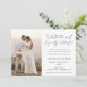 Invitation à la réception de mariage avec "vaut la peine d'attendre pour enfin fêter !" dans un élégant script noir. Customisez avec votre photo.