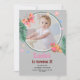 Célébrez le 1er anniversaire de votre petit avec cette invitation chic et vibrante, avec une photo et d'adorables papillons dans les tons rose et vert. Ce design accrocheur est parfait pour une fête de printemps ou d'été !