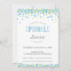 Invitation Sweet Baby Sprinkle dans un jeu de couleurs bleu, vert menthe et jaune, avec des points colorés de confettis arrosées. Ce design est parfait pour un Bébé Sprinkle, ou pour toute célébration Baby shower avec un thème d'arrosage ou de confettis.