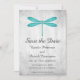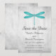 Élégante et simple invitation à sauver la date de mariage mettant en vedette une libellule sarcelle sur un fond grunge gris. Ce design est un choix unique pour annoncer un mariage moderne. Facile à personnaliser avec vos détails de mariage. Cliquez sur "Personnaliser" pour trouver plus d'options de personnalisation.